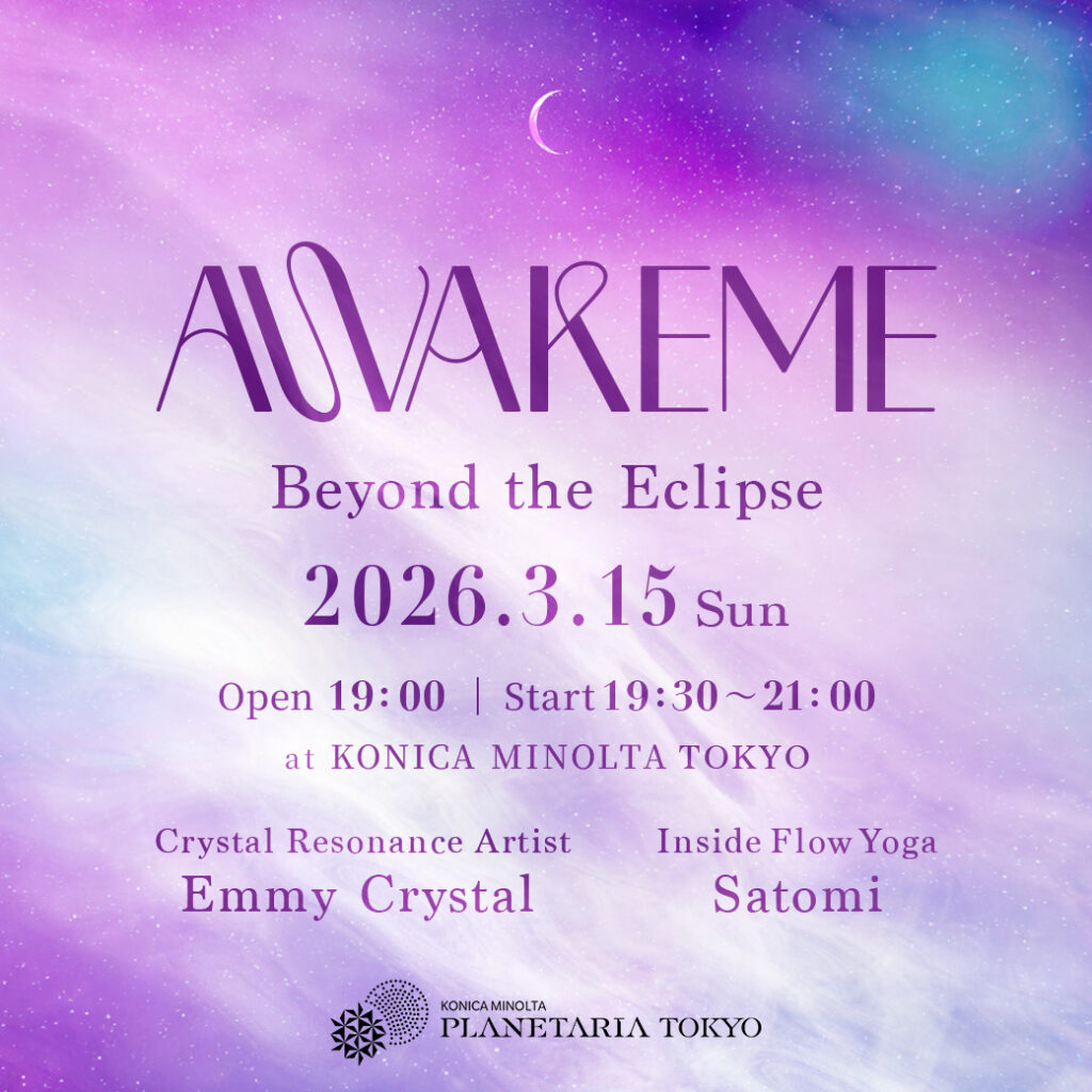 AWAKEME イベント開催が決定 2026 2/07 有楽町・プラネタリアTOKYOを舞台に、 ヨガ・瞑想・サウンドバスで心と身体を解放する ウェルネスパーティ「AWAKEME」が10ヶ月ぶりに開催されます!3月のテーマは 〜Beyond the Eclipse〜 月食の影を抜けて、澄みわたる。自分へと戻るための、聖なる波紋。 詳細は、下記サイトをご覧ください。 AWAKEME